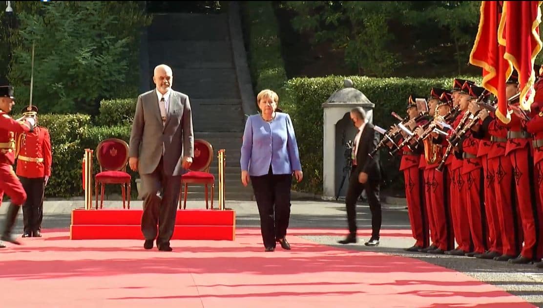 Kancelarja gjermane, Angela Merkel, ka nisur vizitën e saj zyrtare në Tiranë. Merkel u prit nga kryeministri i Shqipërisë, Edi Rama, në Pallatin e Brigadave teksa pastaj do të kenë takim kokë më kokë. Pas takimit veçmas atyre do t’ju bashkangjiten edhe delegacionet.